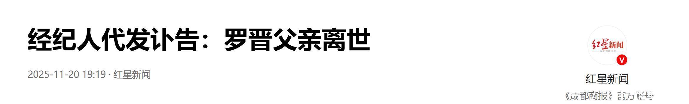 11月20日,罗晋的经纪人发布讣告,明确写到“罗晋与家人沉浸在悲痛之中,专注处理后事”。